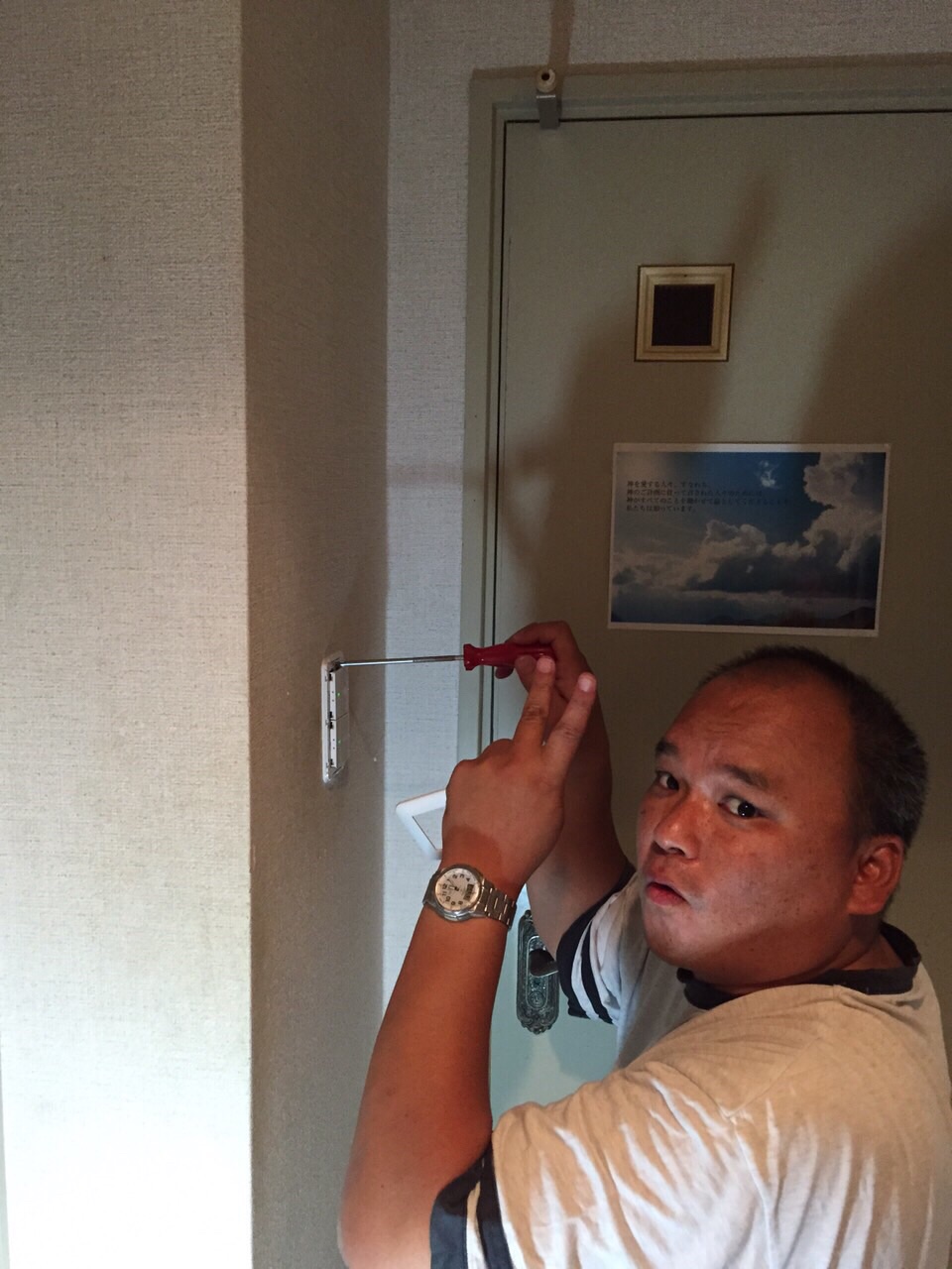 教会のY君が、うちのトイレの電源スイッチを直してくれました! さすが元工業高校生。ありがとう!