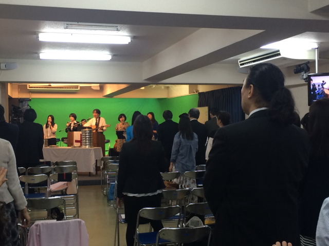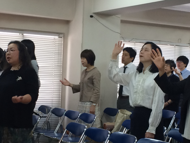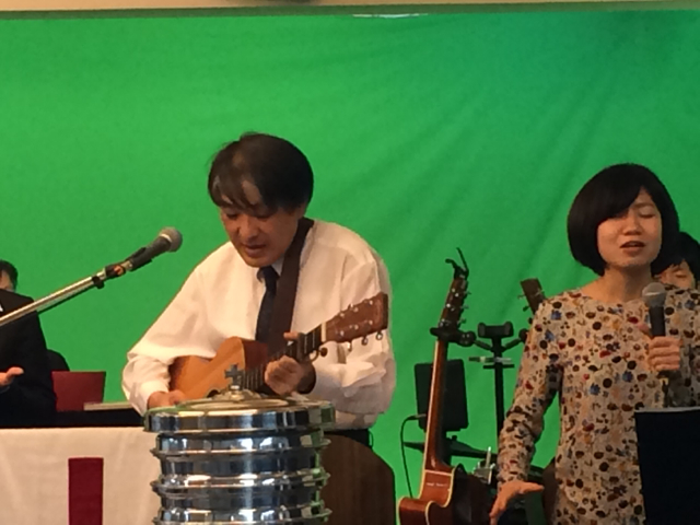 東京アンテオケ教会の牧師である秋元さんが導かれる賛美の時です。