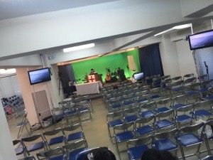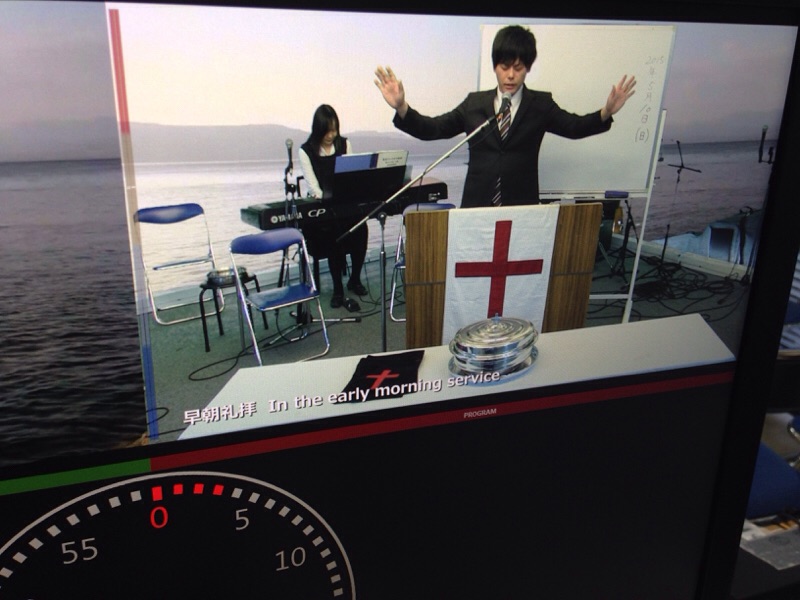 会堂では早朝礼拝に向けて準備中!