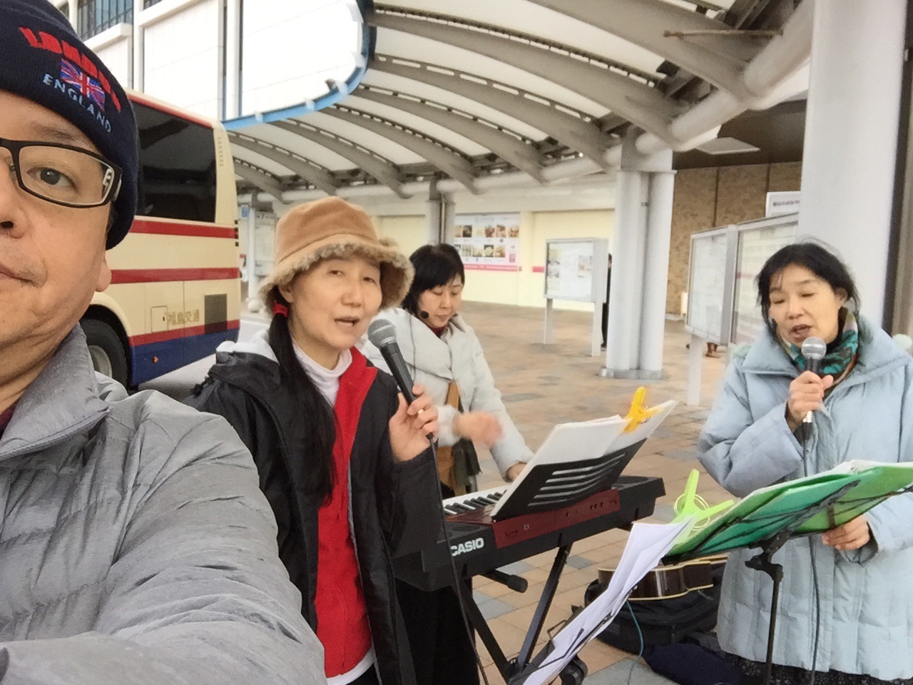 今日は山梨県南アルプス市にある教会に招かれコンサートを行いました。会堂がいっぱいになるほど大勢が集まり、泣いている方々もいて、たくさん声を掛けていただきました。また、来場されたデイケア施設の責任者の方は、以前公園でTrueVineが歌っているのを聴いてすごく良かったそうで、「今日は歌いに来て欲しいから名刺を渡しに来ました」と、その施設に1月伺うことになりました。