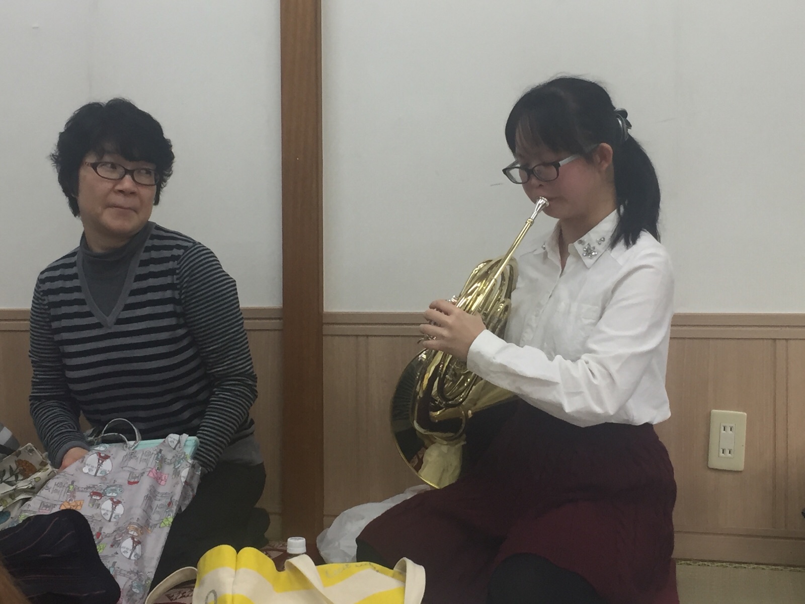 ヤング礼拝でかいなちゃんがホルンを響かせています。