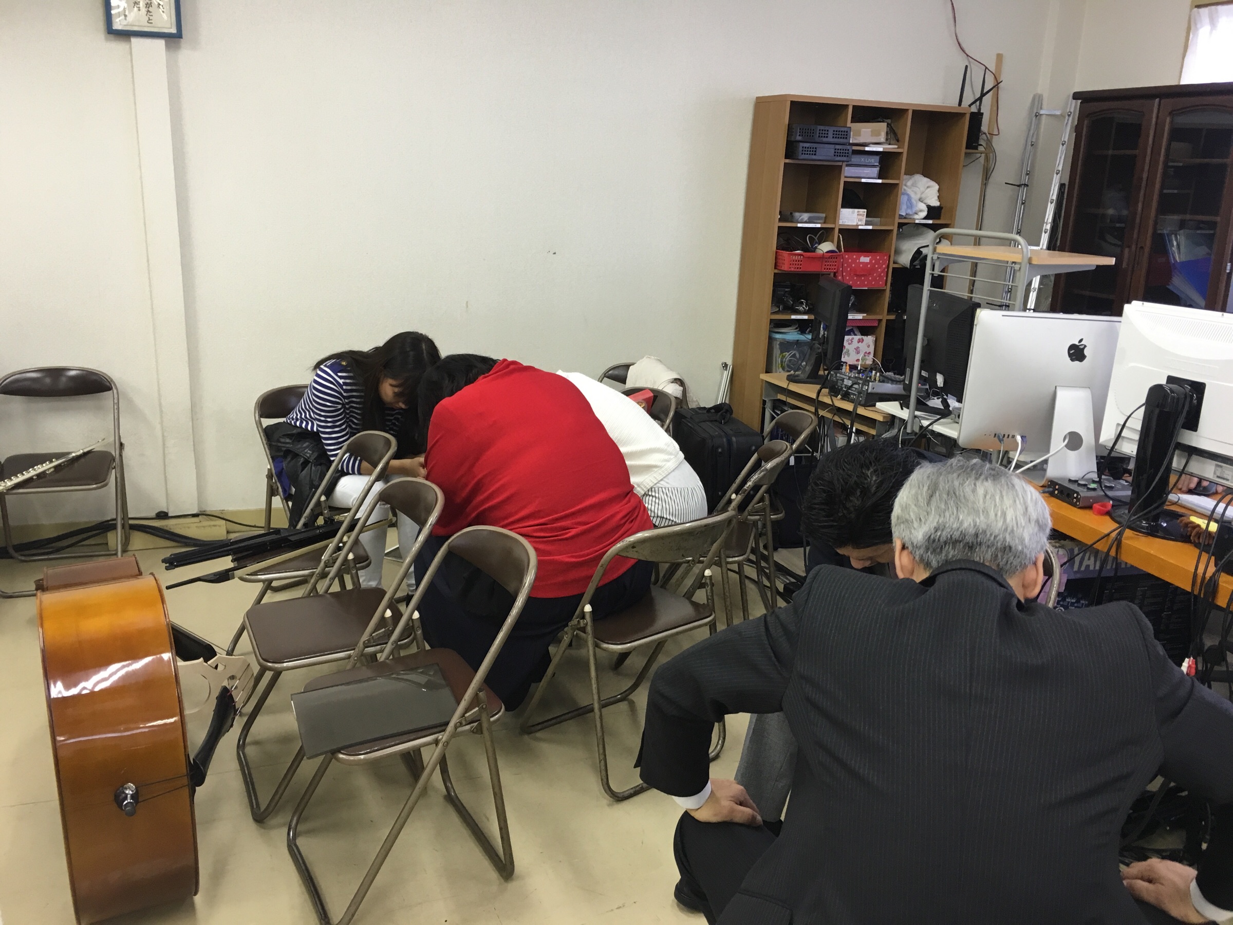 各楽器に分かれてお祈りをしています。