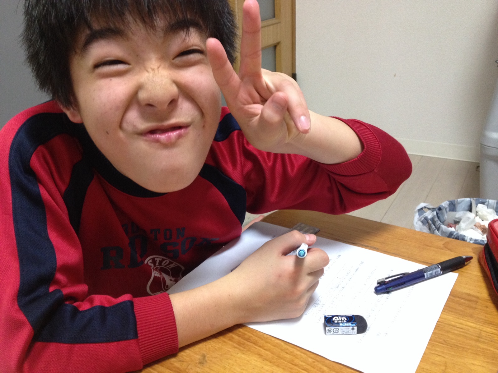 音楽のテストの練習、A判定とれる難しい方ではなくB判定とれる簡単な方で練習してます。「Bの方でいいの?」って聞いたら「イイじゃん別に」とアッサリ。。。