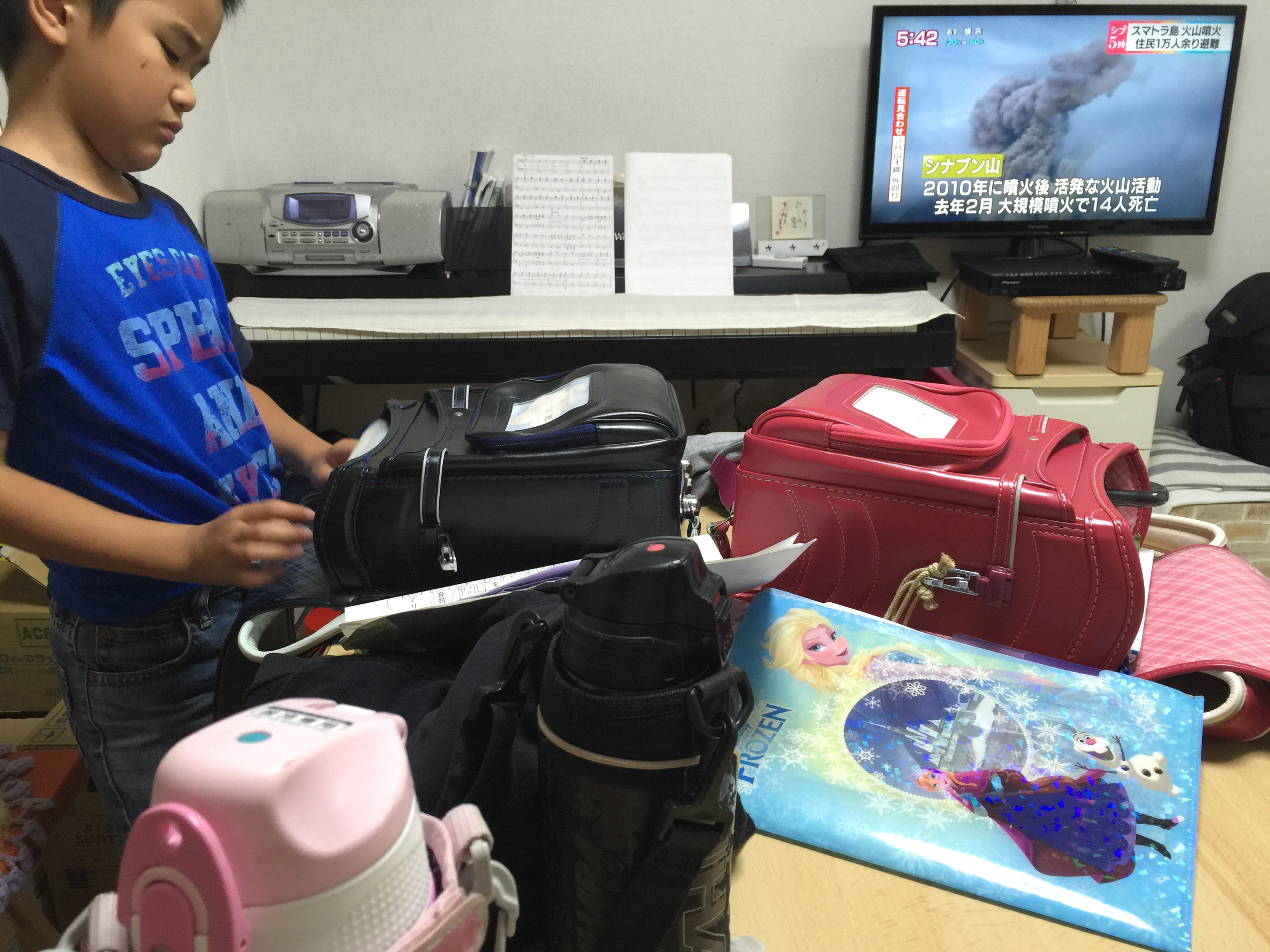 子どもたちの帰宅後の荷物が。