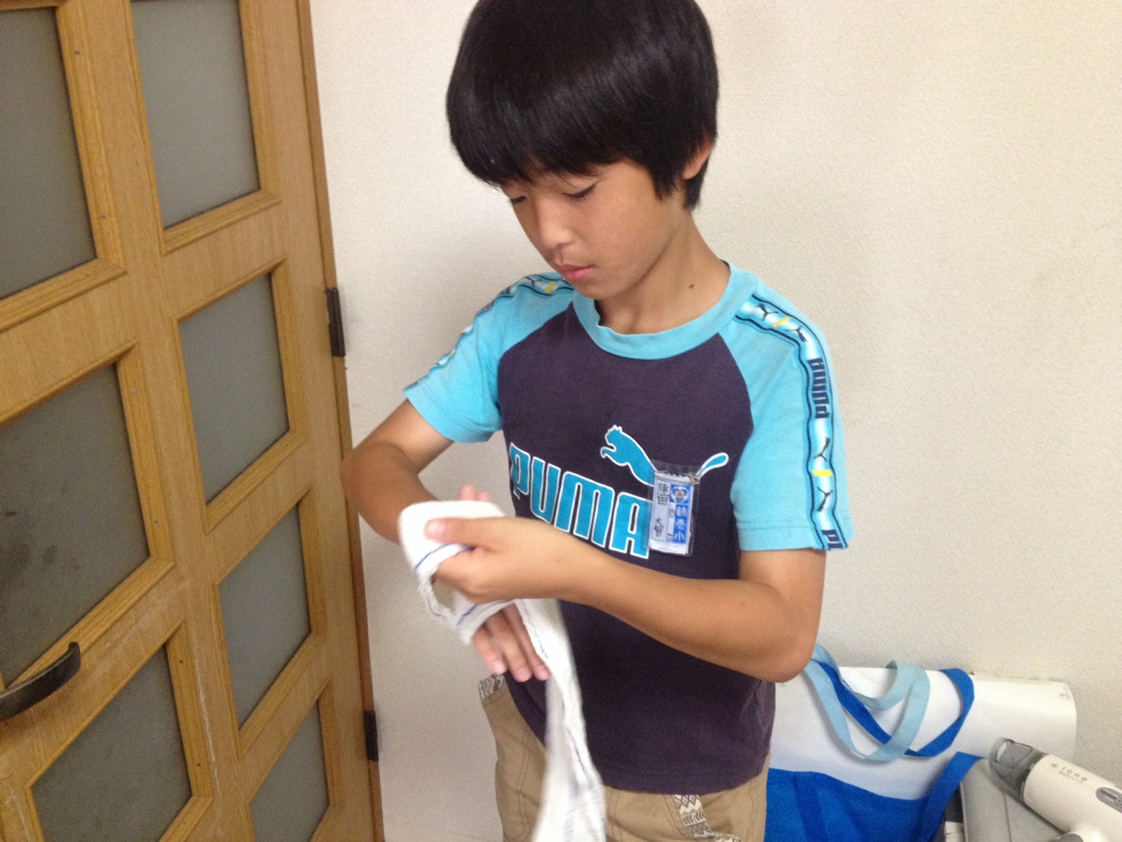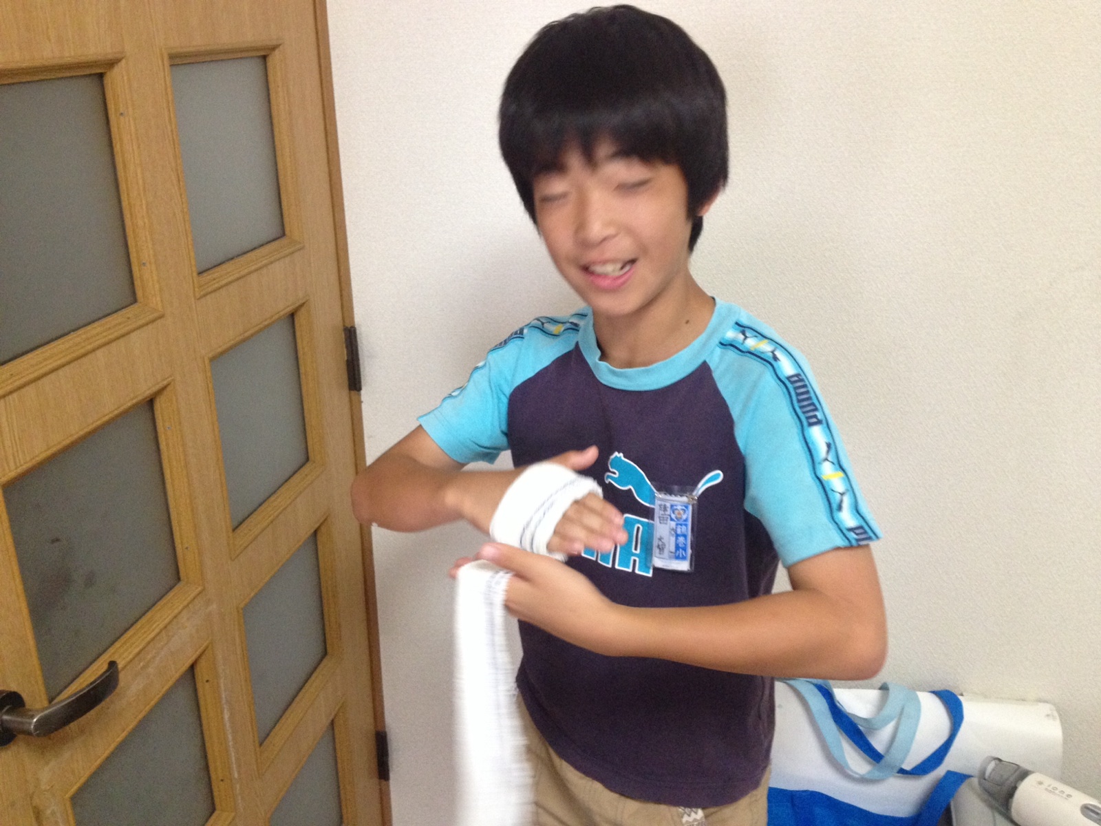 昨日やけどしたところの包帯のやり直しを父親でもなく母親でもなく自分でやっていました。
