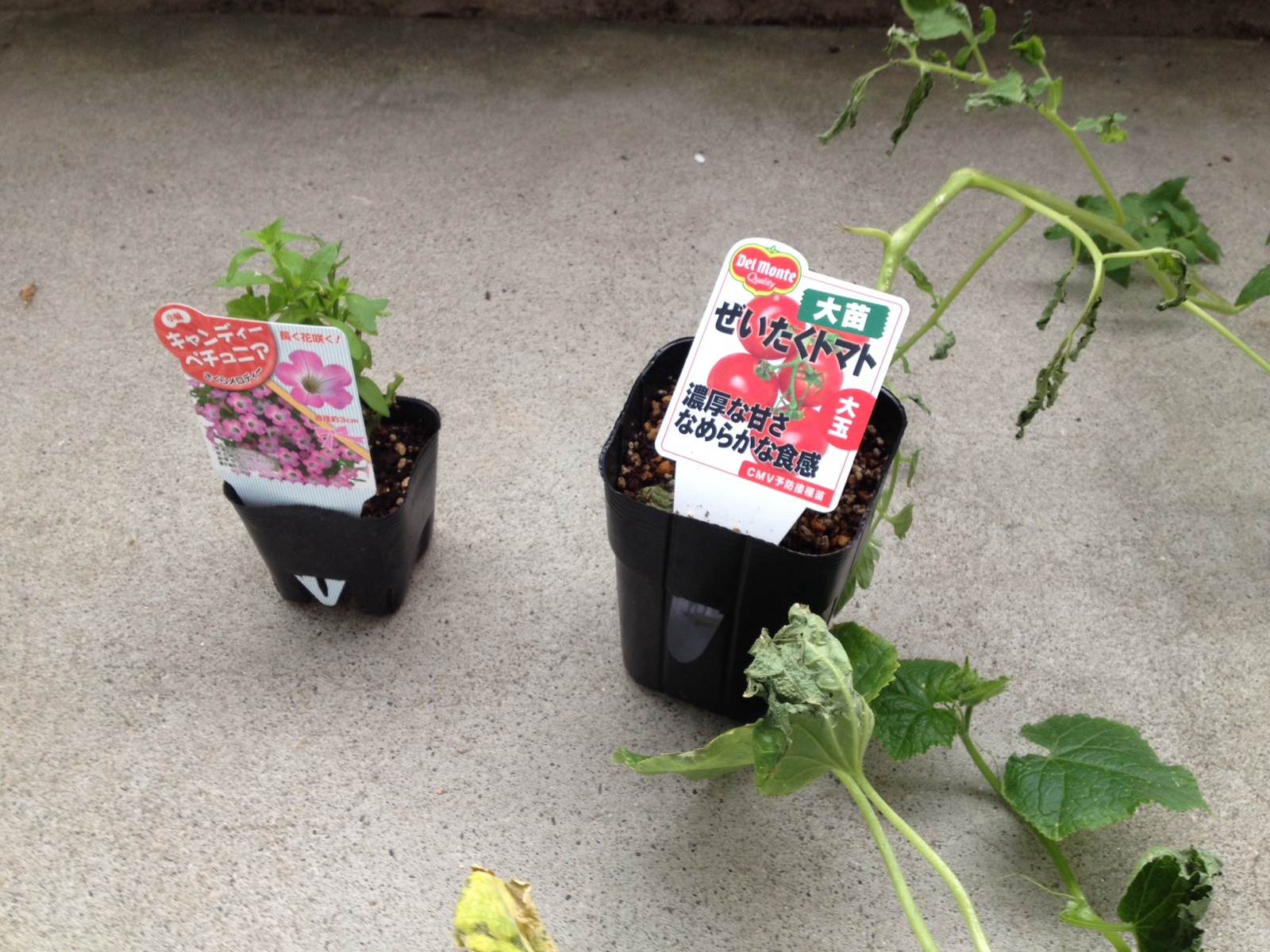 バイト先で色々な苗をいただき娘が喜んでいます。トマトとキュウリもあるけど、父の日には間に合いませんねー。。。