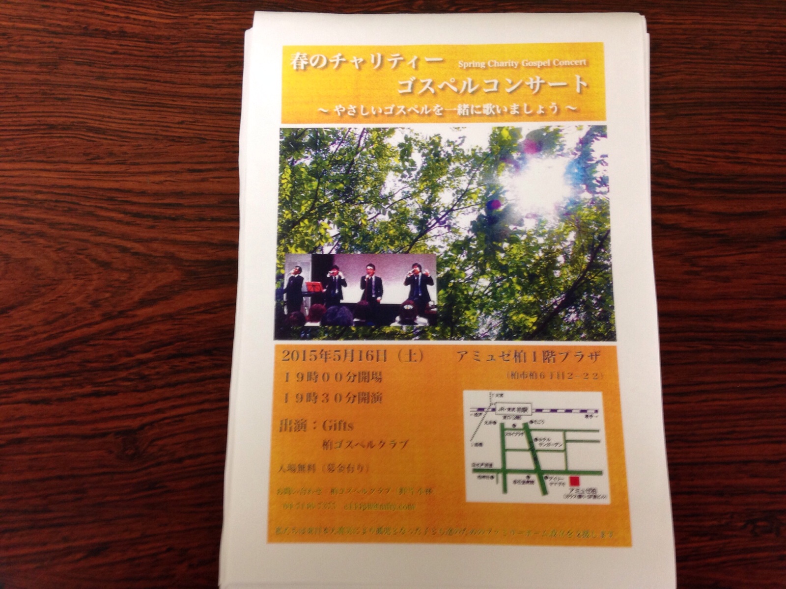 明日5月16日(土)は、柏でチャリティーゴスペルコンサートが、アミュゼ柏・プラザ1階で、開場19:00