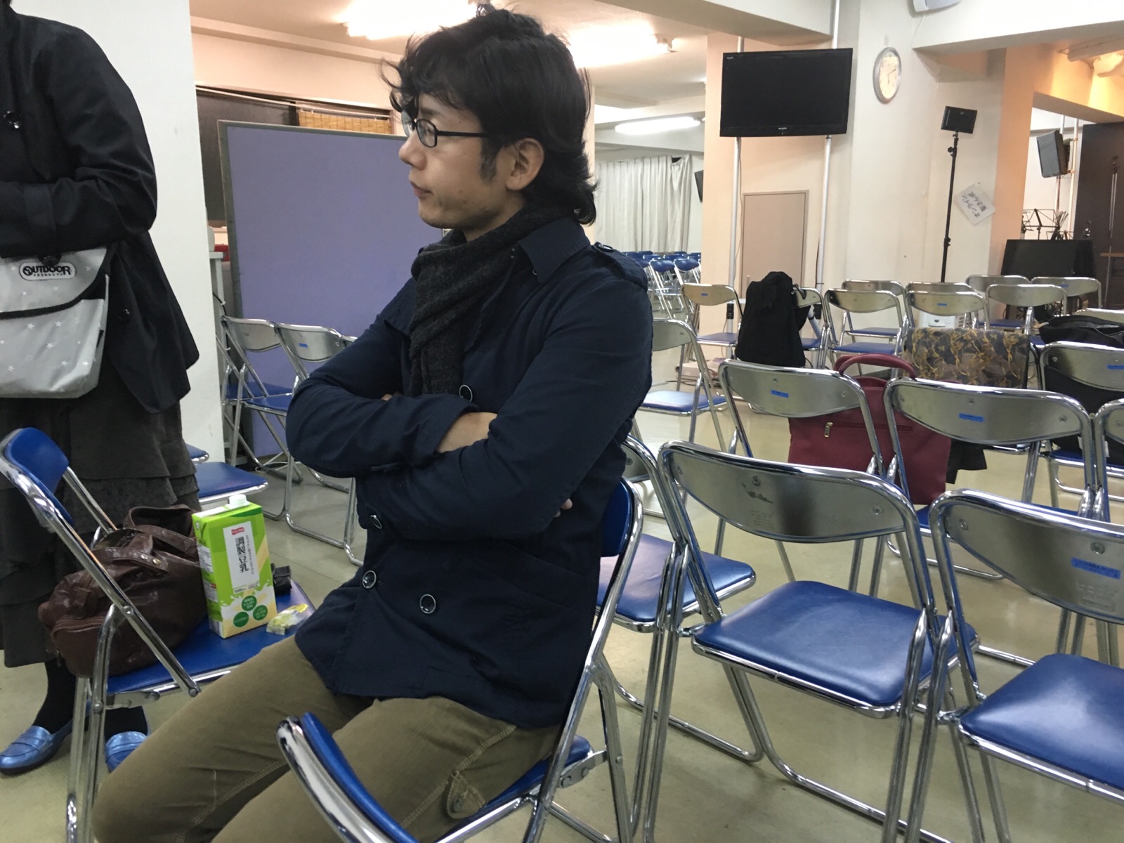 サムエルさん、今日はマフラー。