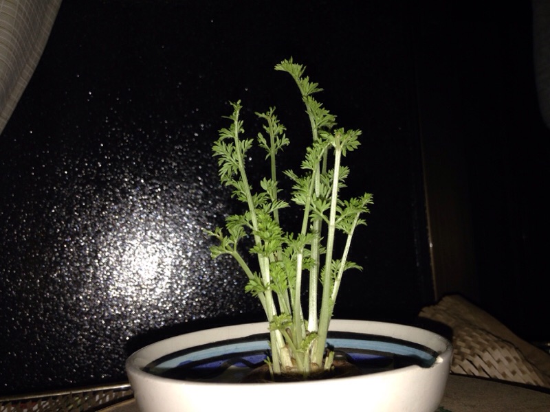 この前、実家に帰った時、母も同じくニンジンの葉を育てていました!