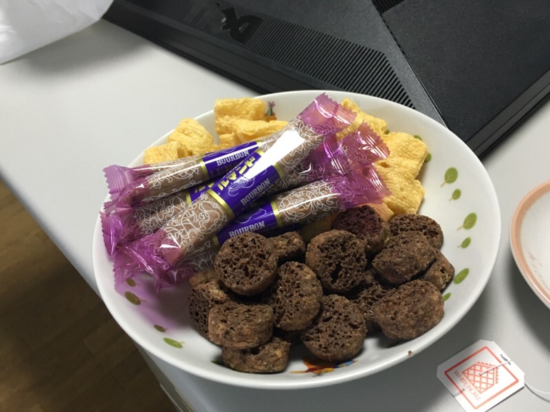 お菓子と紅茶をいただいております!