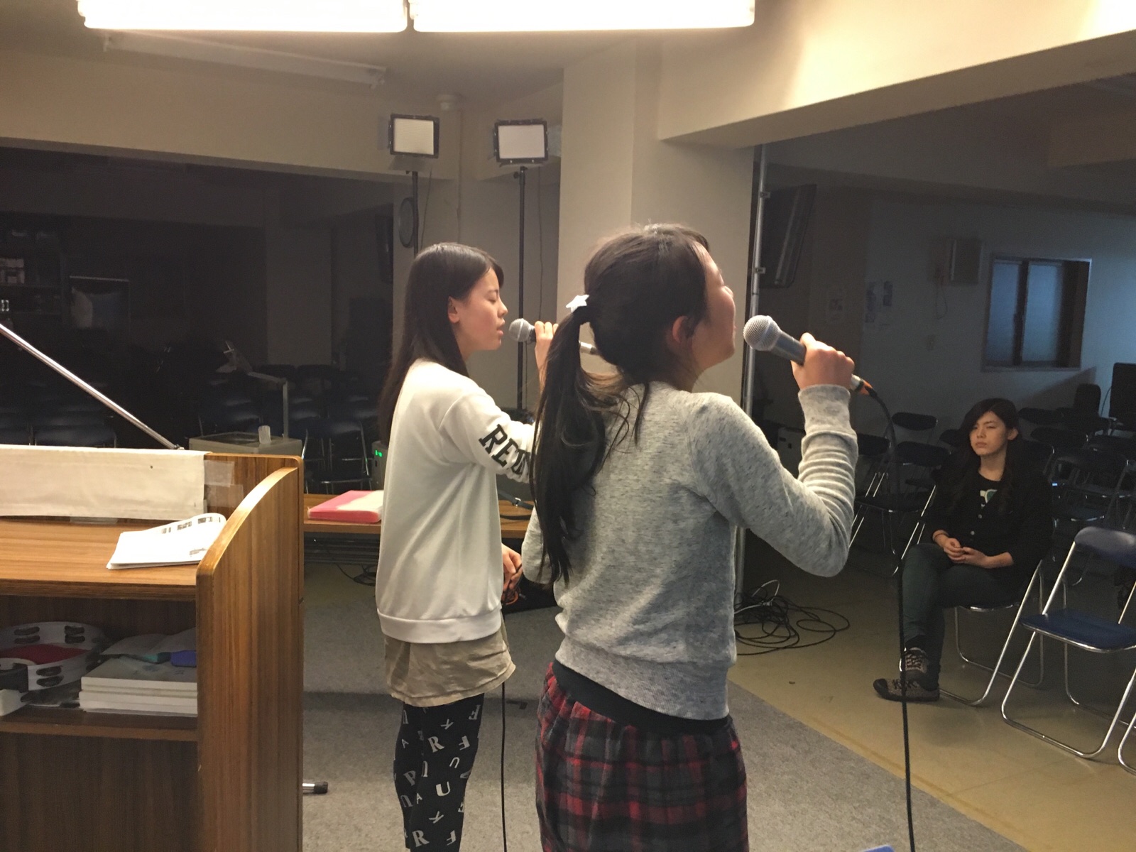 今日はみんなの前で歌う練習しました。