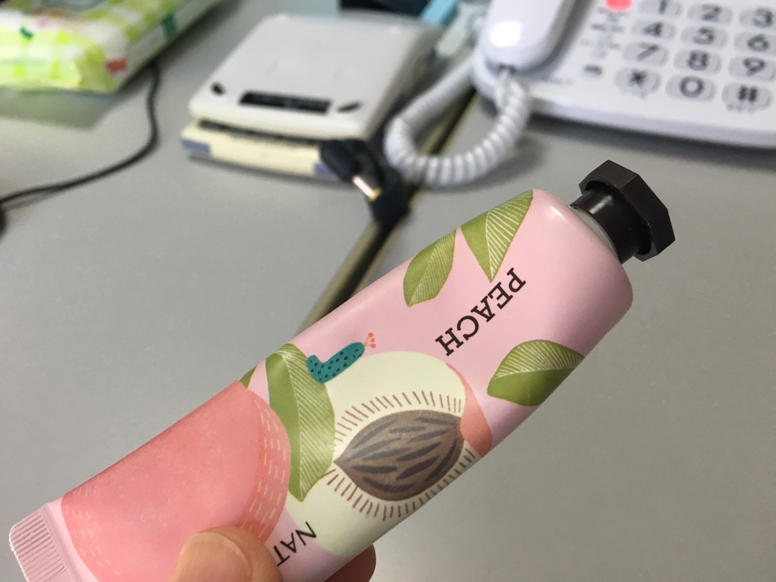ピーチのハンドクリームをつけたら、加藤さんが、誰かグミ食べたでしょう?..と、こちらをチラリ…