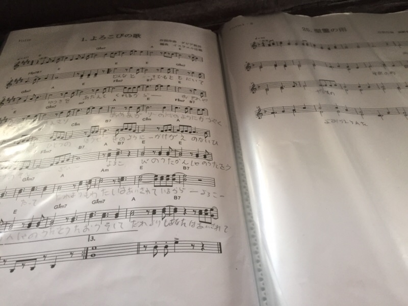 殉教聖会の楽譜を見ながら。。宮崎教会 みなみ