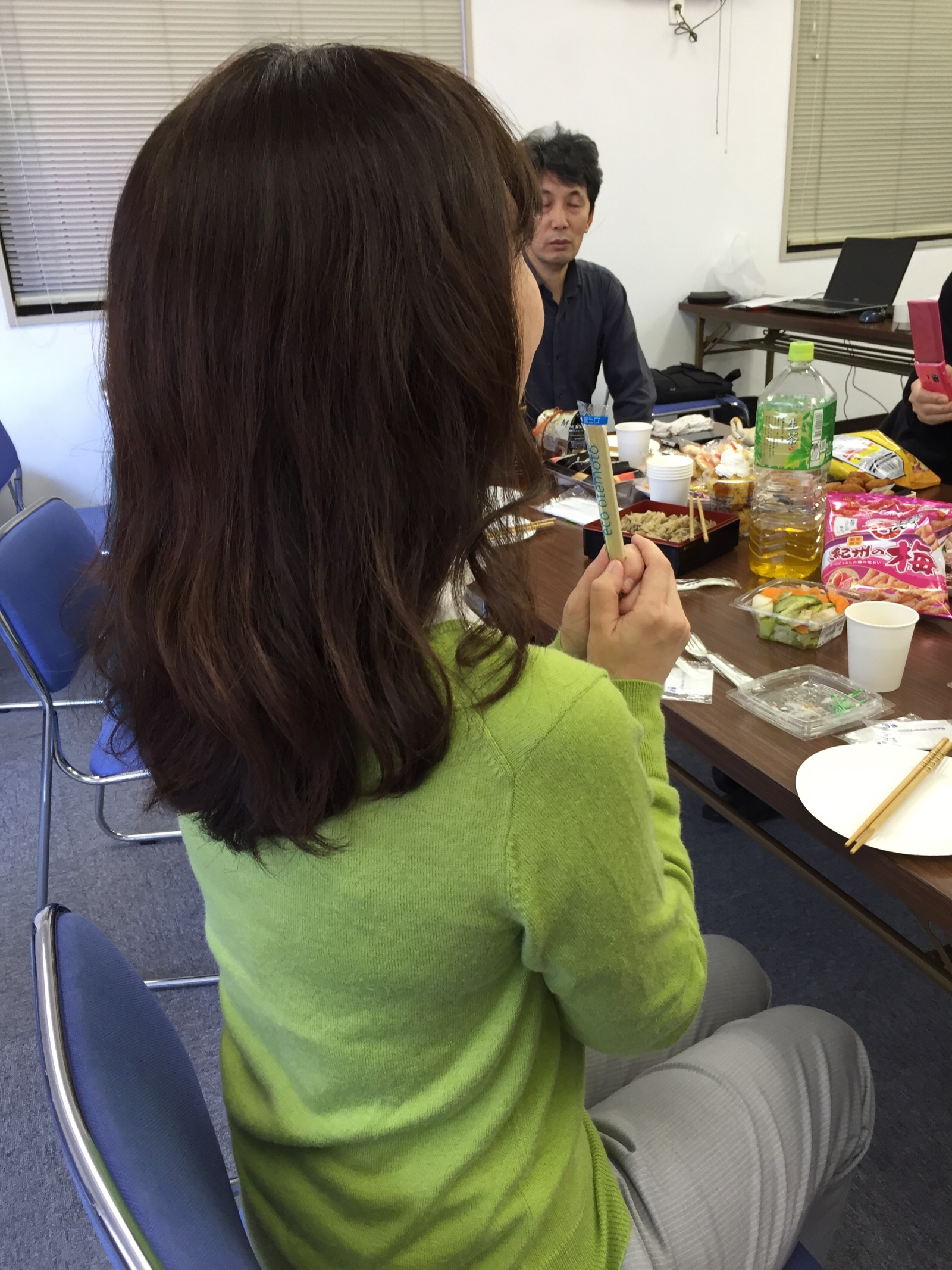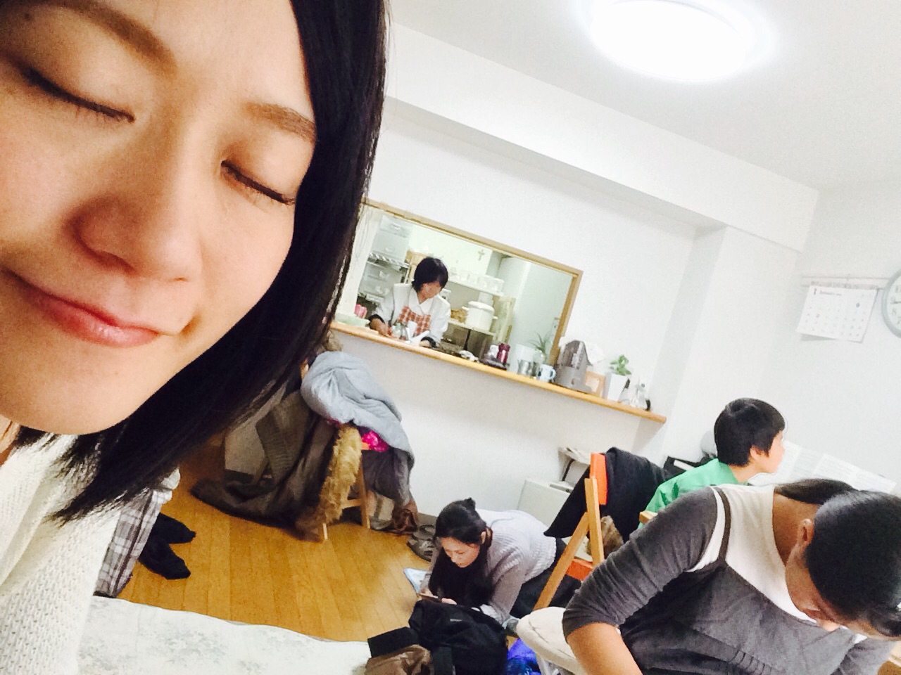 お祈りの時間までくつろぎタイム。私はパソコンの前で写真をアイフォーンから移す作業。姉に言われて。