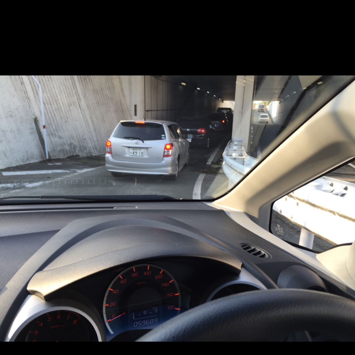 ゆめタウンに入る車が混雑中。目的地はホンダ。(´・_・`反対側にあるので、一旦入って出ることに。
