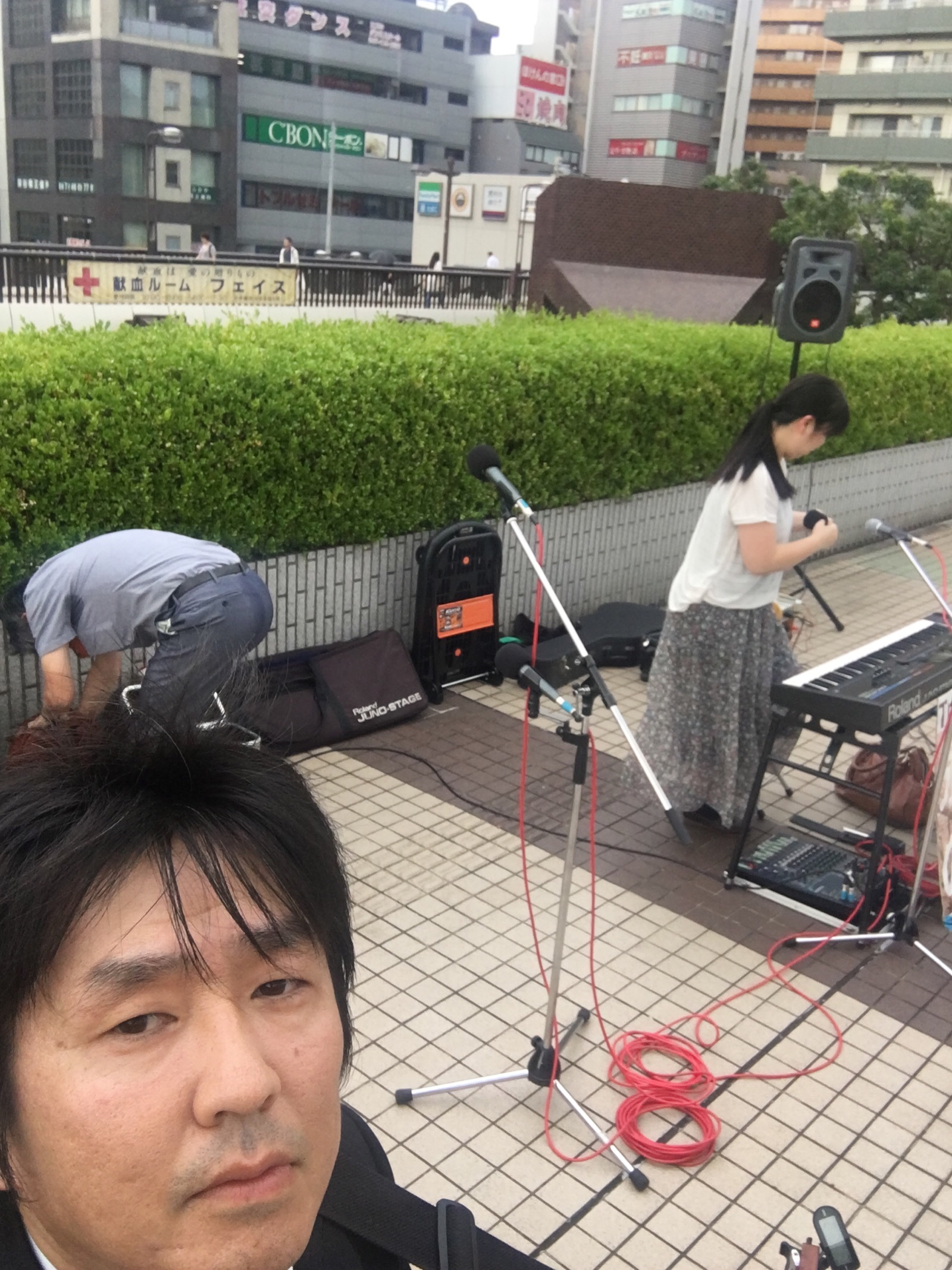 先程の路上ライブにはおもしろい女子高生2人がきて、「いままで路上ライブは完全無視だったけど、メッチャ感動した!」と話しかけてくれ、写真を一緒に撮りました。他にもおじさんがずっと聴いてくれたり、CDも3枚販売できました!