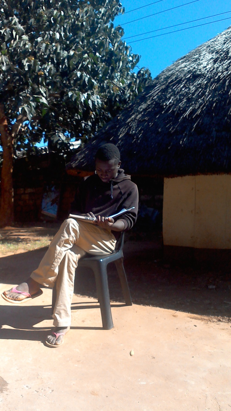 テリースは日なたで勉強中。高校卒業試験は間近!ザンビア