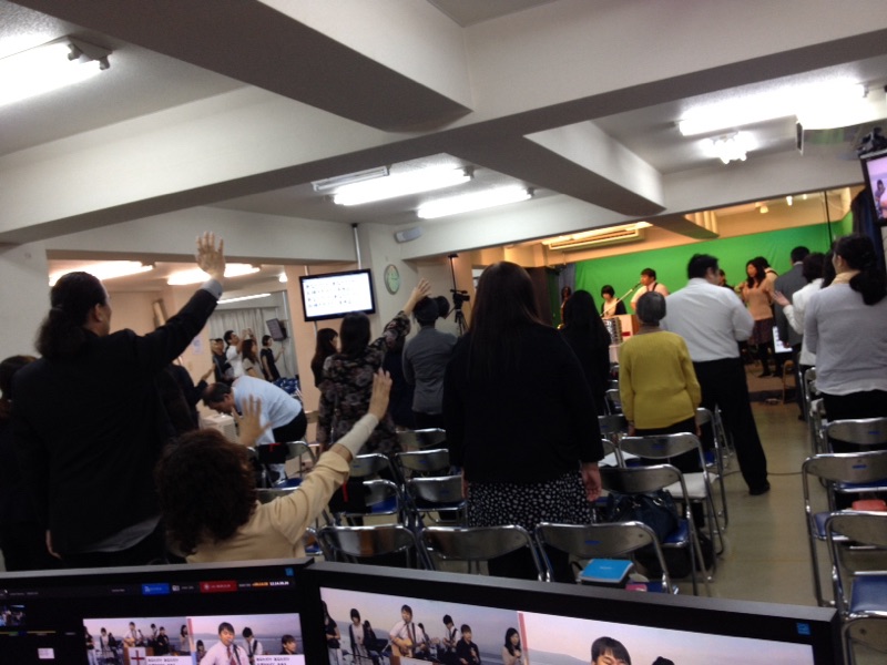 第三礼拝、賛美します。