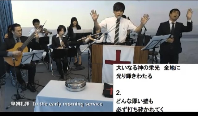 早朝礼拝を見ながら教会に向かっています!amagai