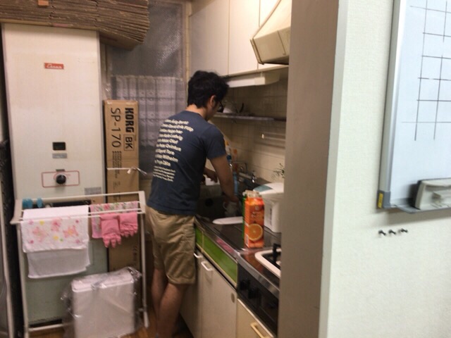 ヨハネ君、カップを洗ってます。