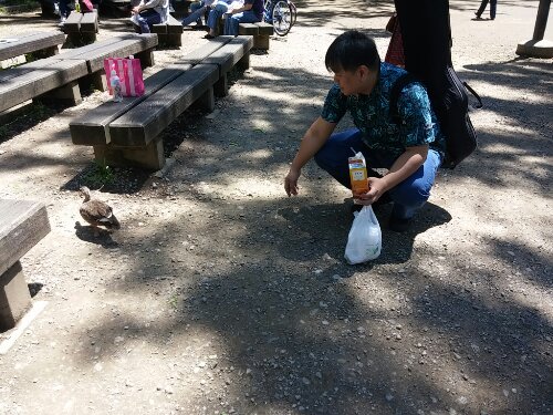 カモに「カモン」と言っている前田さん!(笑)