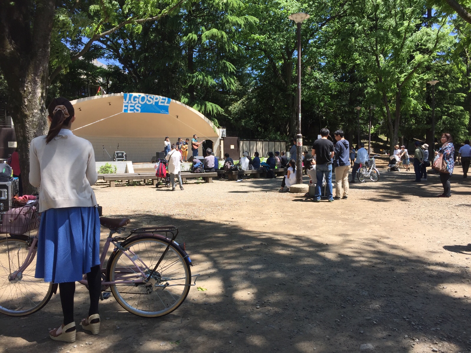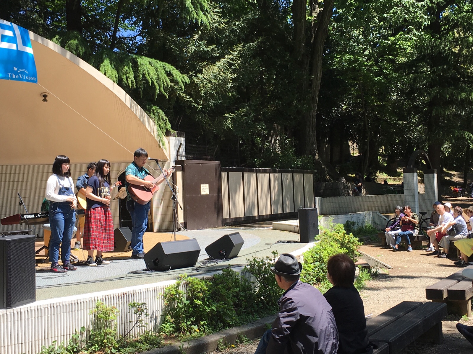 沢山の人が立ち止まって聴いています。