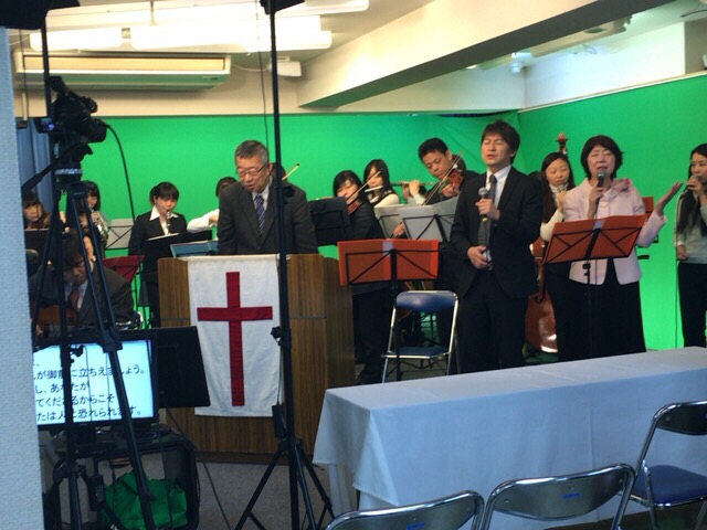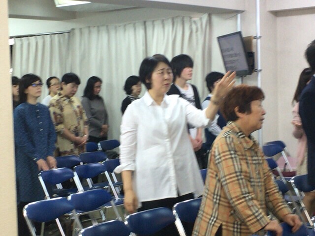 東京アンテオケ教会の牧師である秋元さんが導かれる賛美の時です。