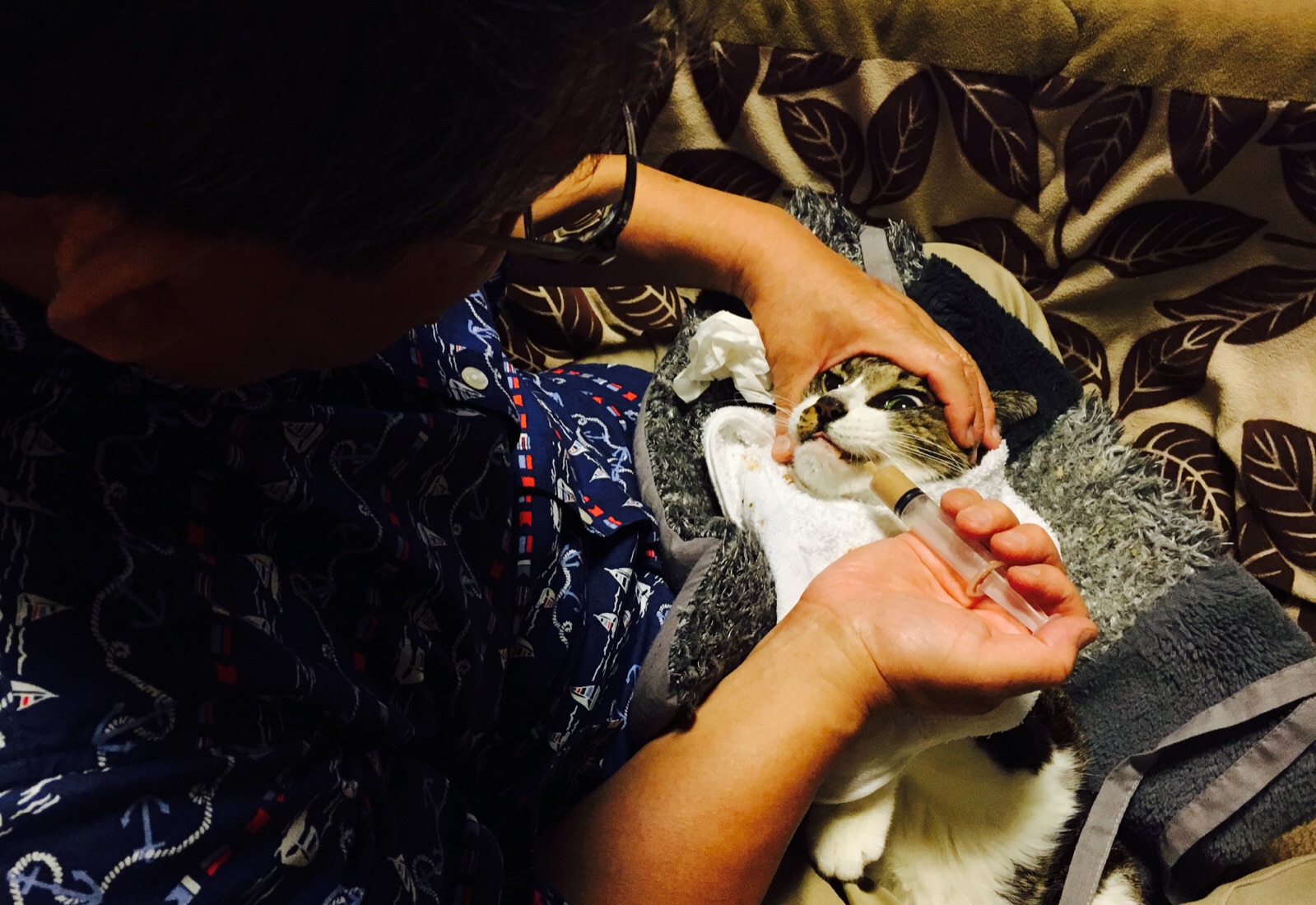 しかし、ご飯はこうやって注射器でもらってました。完全に抑えこまれてますね…(笑)