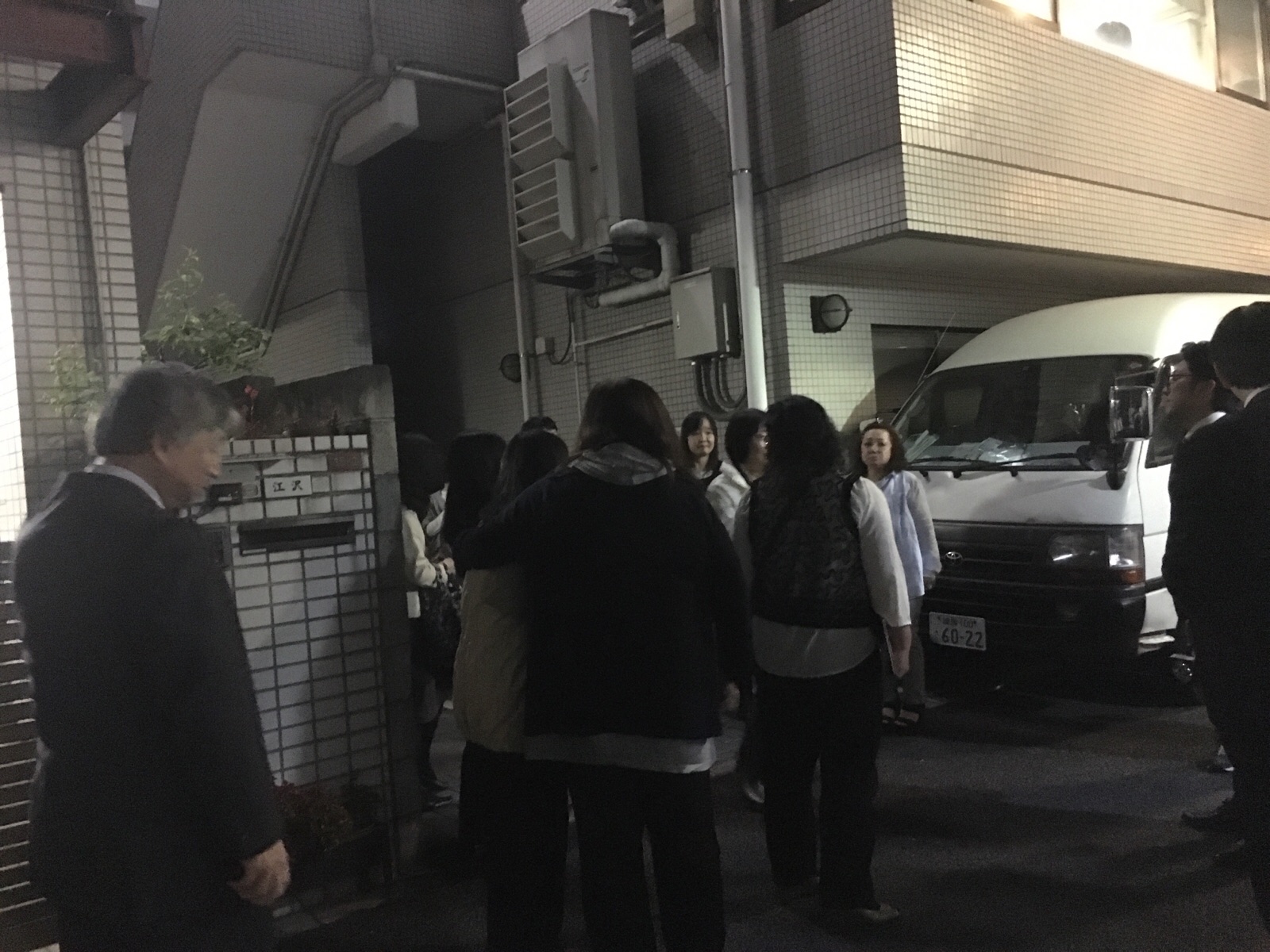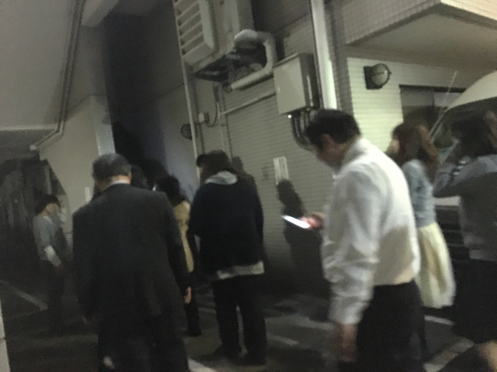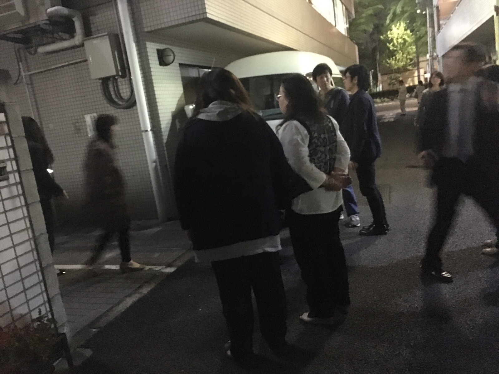 皆さん、外に避難して来ました。