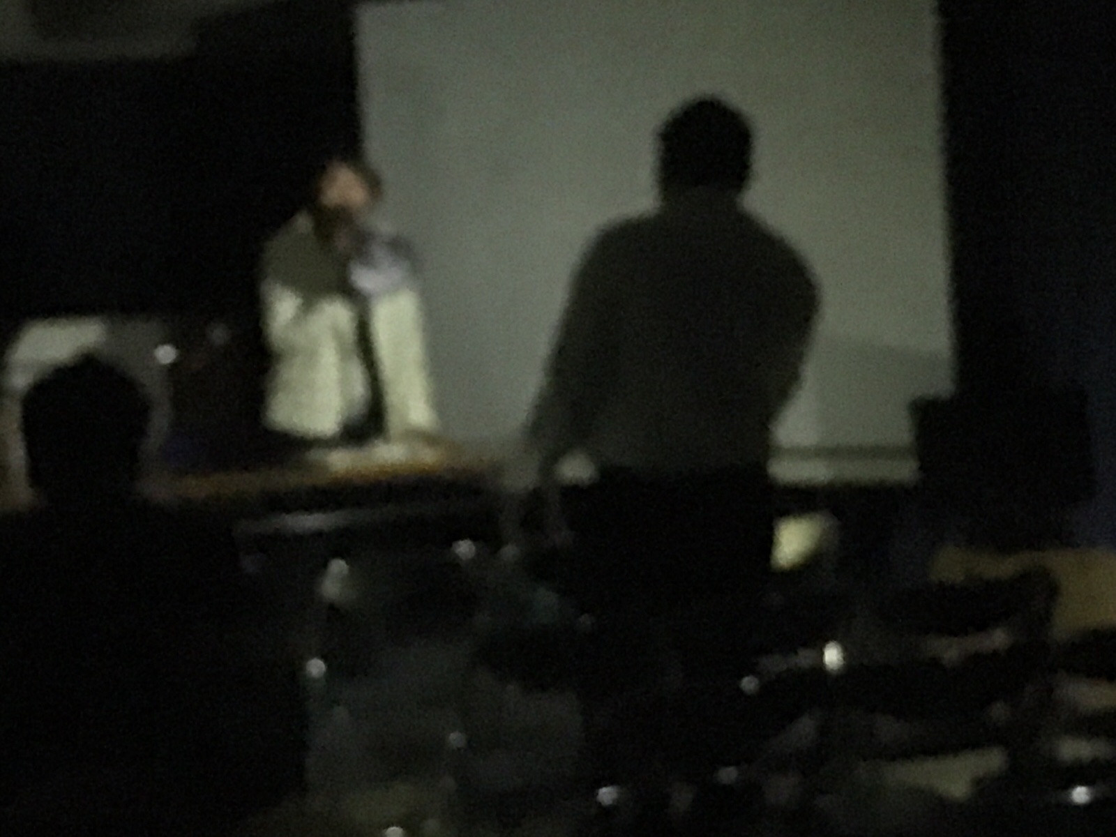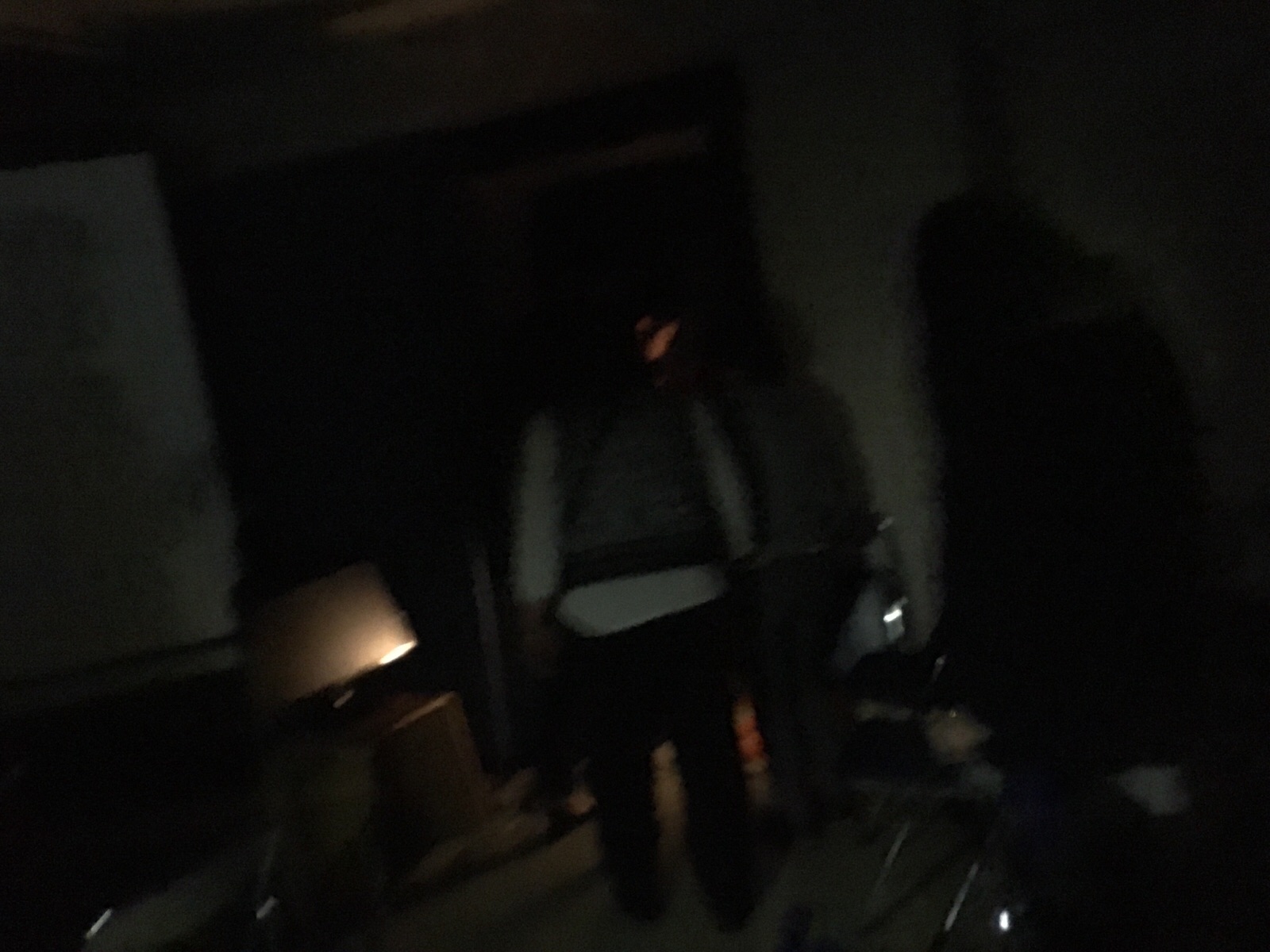 アイフォンの灯りを頼りに避難します。