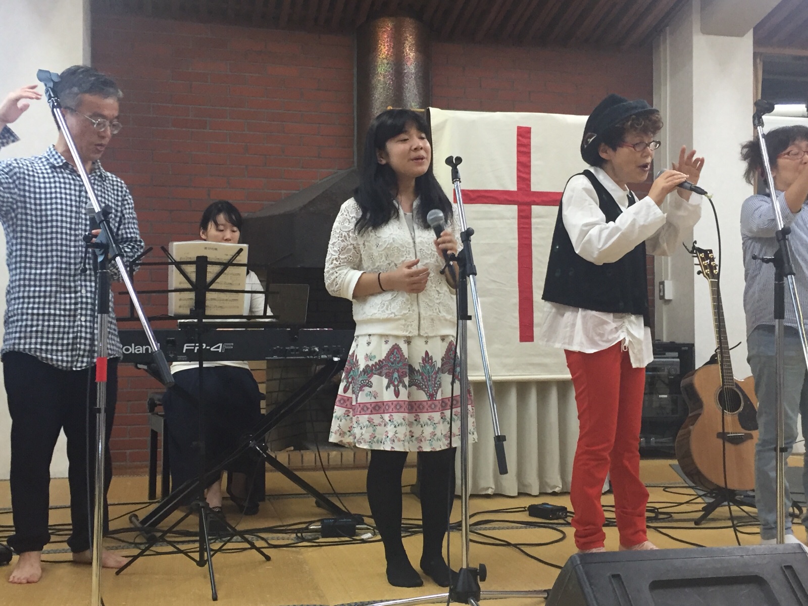お天気に恵まれて、美しい山々に囲まれて、賛美しました。