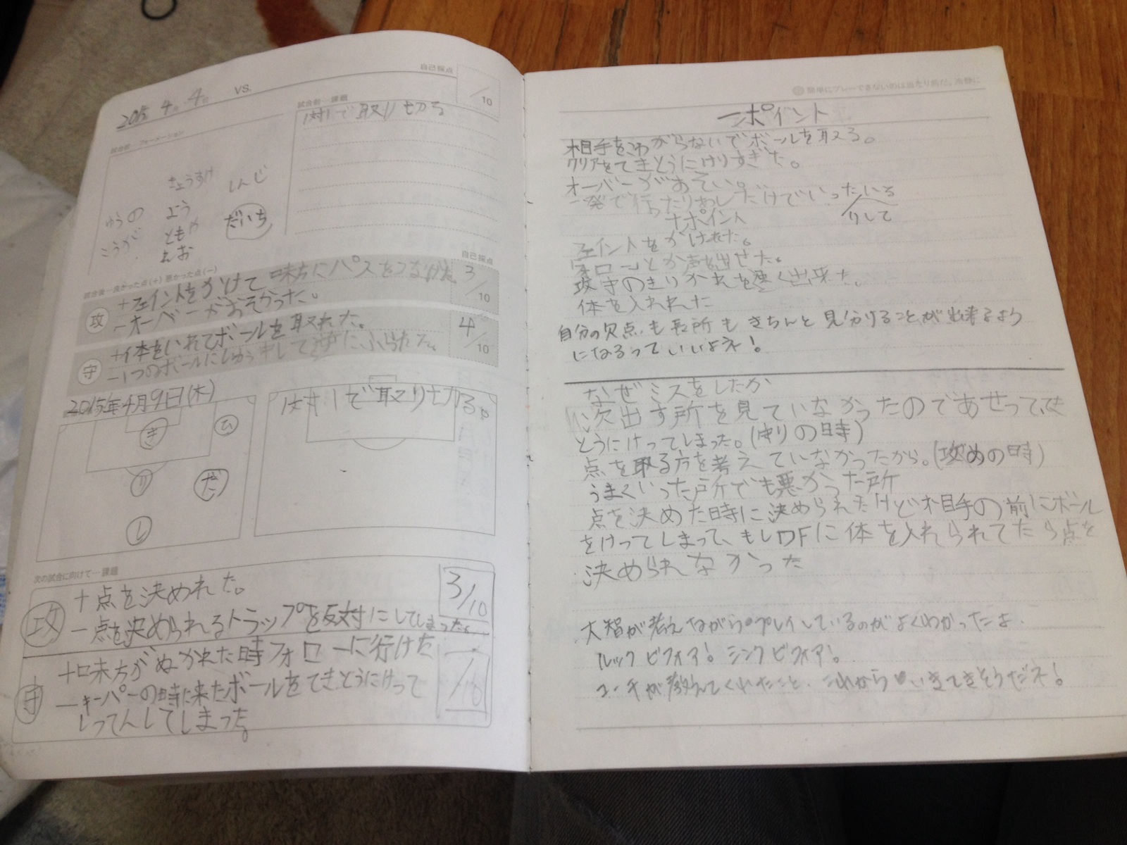 息子が練習や試合があるたびに書いているサッカーノートに今日の一言みたいのがあるんですが、そこに「落ち込む時間があるなら練習しろ」って書いてあった、だから落ち込んでないで練習すると言っていました。