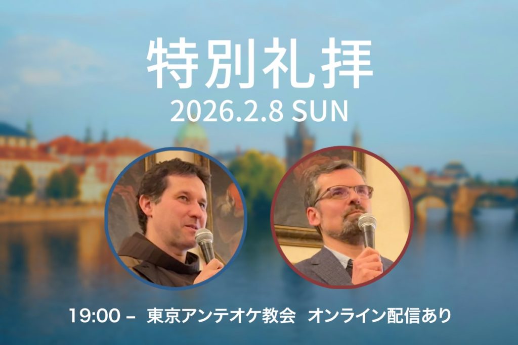 2026年2月8日(日)19時より、東京アンテオケ教会にて第七礼拝が行われます。本礼拝では、ヤコブ司祭およびダビデ牧師が奉仕されます。会堂での参加に加え、オンライン配信も行われます。