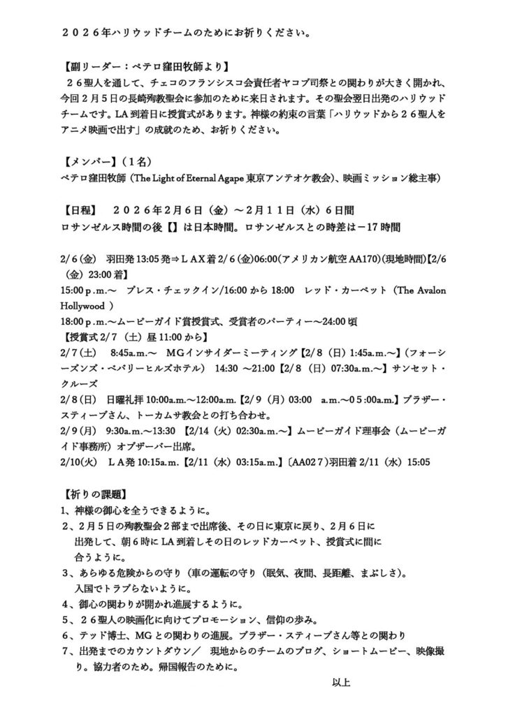 The countdown has now begun for the 2026 Japan Twenty-Six Martyrs Memorial Service, with fewer than ten days remaining. Through much prayer and careful preparation, we are approaching this important gathering.